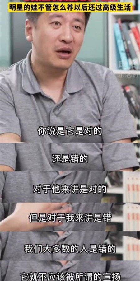 首页 张雪峰批明星带娃类综艺:老百姓的家庭不是这个样子的 2022-09-21 09:00:06 分享 搜狐娱乐讯 近日,张雪峰在采访中谈明星带娃类综艺,他说:“我从来不建议大家去看明星养娃的综艺,人家的养娃方式,你行吗,你有那条件吗?”张雪峰还表示,我就说不要有这种节目,老百姓的家庭不是那个样子,它就不应该被所谓地宣扬。对此有网友认为张雪峰一针见血,但也有人说反驳,“就单纯想看个综艺下饭不行吗?”张雪峰曾因“劝人考研的段子”火遍全网,被网友尊为“那个劝人考研的老师”、“那个段子张口就来的老师”。返回搜狐,查看更多
