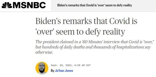 拜登关于“新冠疫情结束”的言论像是无视现实。图片来源:美国全国广播公司报道截图