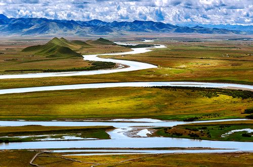 四川省阿坝藏族羌族自治州若尔盖县黄河九曲十八弯犹如一道道流畅的飘带。视觉中国供图