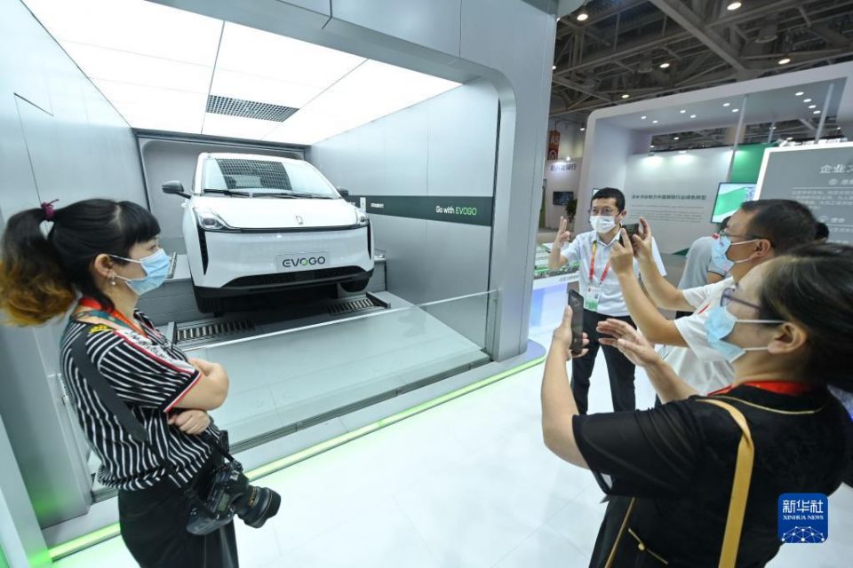 在福建厦门举行的第二十二届中国国际投资贸易洽谈会的宁德时代展位,来访者参观新能源汽车换电过程(2022年9月8日摄)。新华社记者 林善传 摄