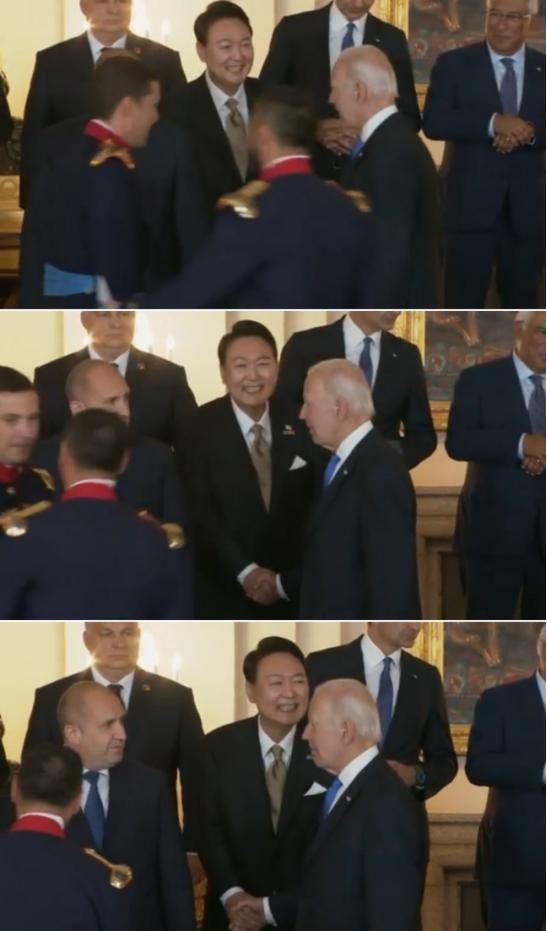 的确,尹锡悦在今年6月北约峰会期间出席西班牙国王为各国领导人举行的欢迎晚宴,期间在和美国总统拜登握手时,拜登没有和尹锡悦对视,而是边跟尹锡悦握手边跟别人交谈。这一场面被镜头捕捉到并迅速引发韩国网友热议。