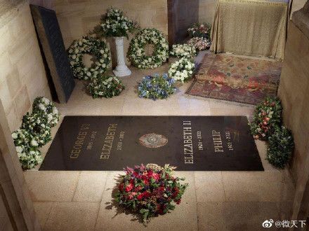 这块墓碑坐落在乔治六世国王纪念教堂内,女王于1962年委托该教堂作为她父亲乔治六世的墓地。2002年女王的妹妹玛格丽特公主和母亲伊丽莎白王太后相继去世,她们也被安葬在此处。(极目新闻)