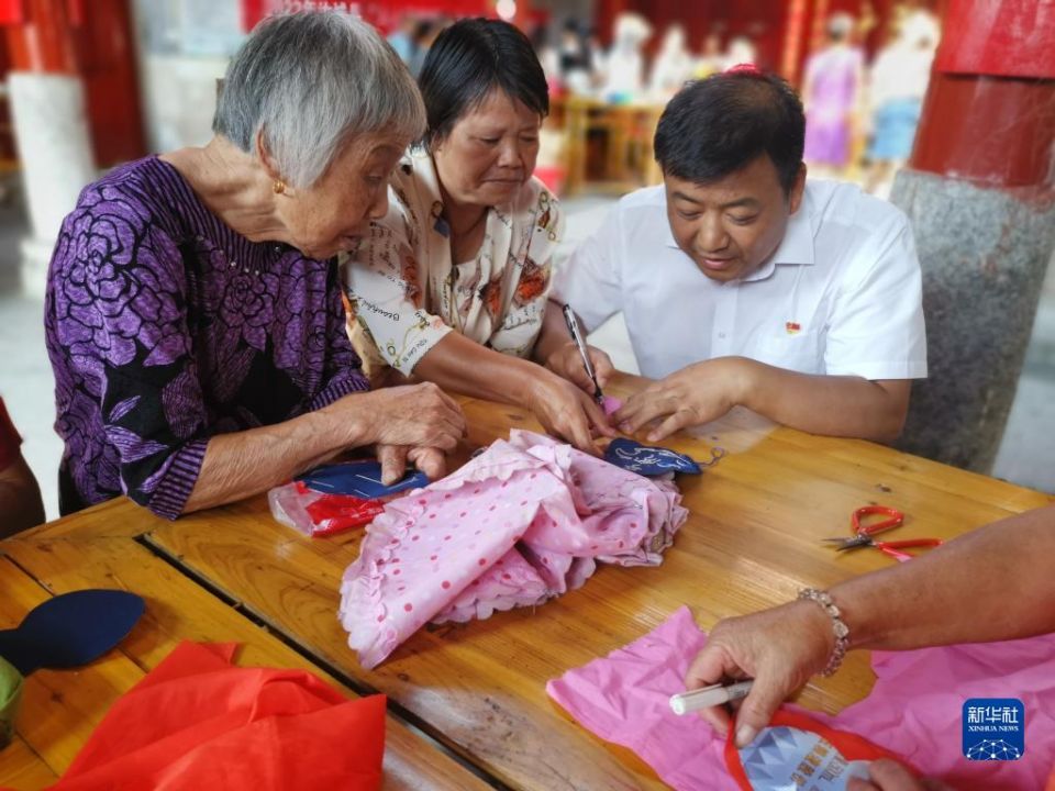 村民朱国香听说有技能培训,抄起眼镜就赶了过来,认真学着最新的瑶绣样式。“我家种水果,务工收入也越来越多,生活一年比一年好。”她对记者说。
