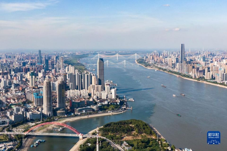 武汉江景(2021年6月13日摄,无人机照片)。新华社记者 肖艺九 摄