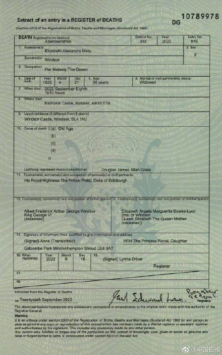 首页 英国女王死因确认 2022-09-30 09:53:15 分享 据英国《每日电讯报》报道,英国女王伊丽莎白二世的死亡证明确认,她于9月8日下午3点10分死于“高龄”。伊丽莎白二世的死亡证明由其女儿安妮公主签署,她在女王去世前的最后24小时都陪在女王身边。(记者 李雪晴)[责任编辑:季爽]