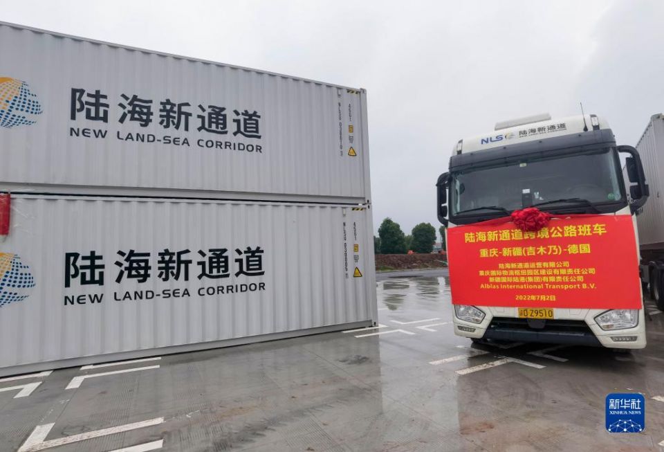 这是陆海新通道跨境公路班车(2022年7月2日摄)。新华社发(张云龙 摄)