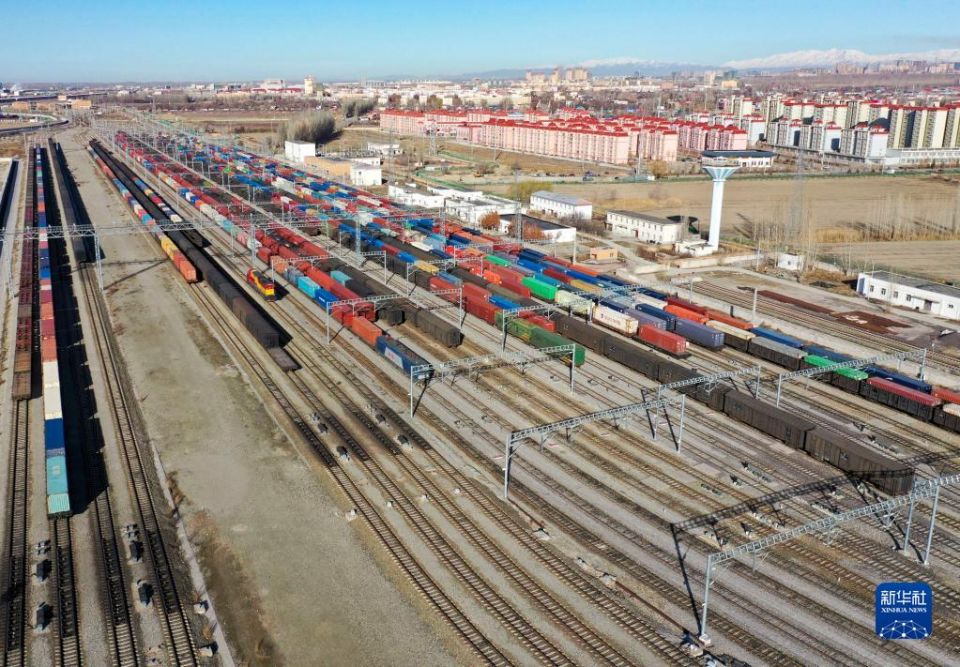 这是新疆霍尔果斯铁路口岸(2022年3月31日摄,无人机照片)。新华社发(吴志恒 摄)