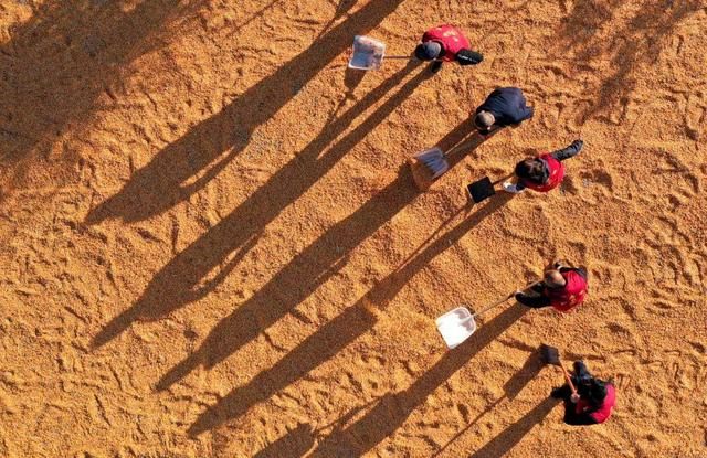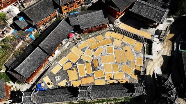 村民在晾晒稻谷