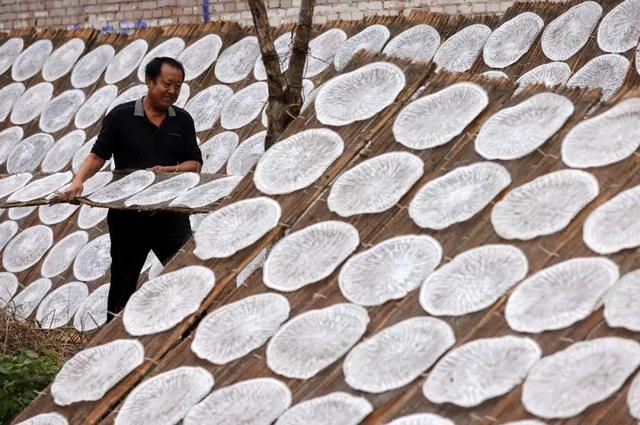 村民在房屋前晾晒粉皮