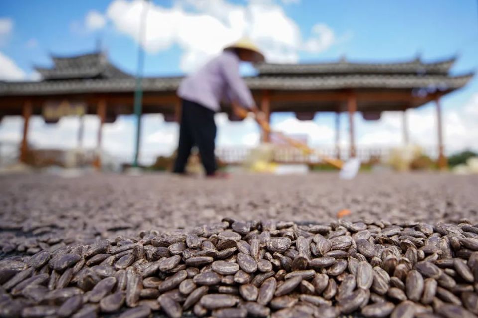 村民在晾晒吊瓜子