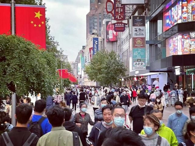 国庆期间上海南京东路街头热闹非凡,潘江涛摄。