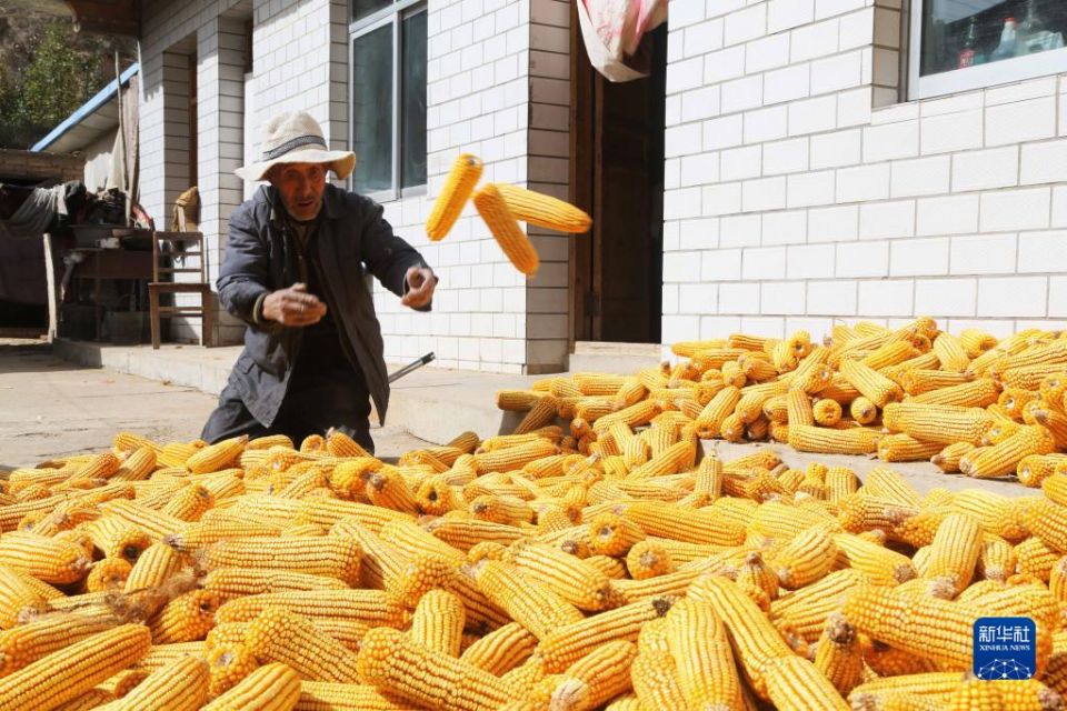首页 秋粮收获进度过半 2022-10-10 08:40:04 分享 10月9日,甘肃省定西市安定区青岚山乡大坪村农民在晾晒玉米。农业农村部最新农情调度显示,截至目前,全国秋粮已收获6.72亿亩,进度已达51.5%。新华社发(王克贤摄)