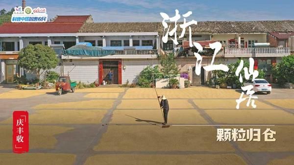 浙江省台州市仙居县南峰街道管山社区,农民正在翻晒收割的稻谷。金秋时节,仙居县农民抢抓农时收割、晾晒晚稻,确保颗粒归仓。(光明图片/王华斌摄)