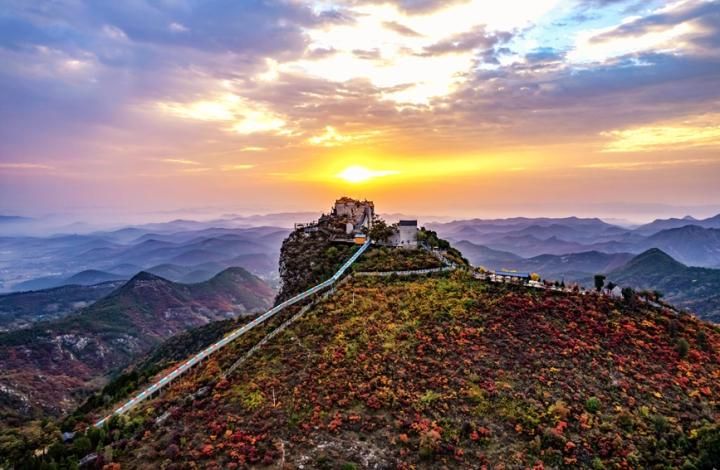 首页 河南安阳:秋染太行 红叶如霞似火 2022-10-21 08:46:26 分享 人民网郑州10月20日电(辛静)金秋十月,河南安阳林州太行大峡谷红叶进入最佳观赏季。登高远眺,漫山遍野的红叶如霞似火,重峦叠嶂间层林尽染、五彩斑斓,“太行天路”从群山中蛇形穿过,如同一幅美丽的画卷,置身其间,让人心旷神怡、叹为观止。每年10月中旬至11月中旬,太行大峡谷红叶胜景都会吸引众多游客前来观赏,领略秋韵。太行红叶文化熔丰富的地质、地理、生态文化及太行山民俗文化于一炉,具有较强的观赏、美学、科考和经济价值。