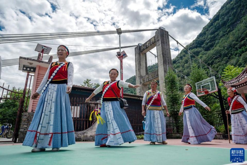 云南省怒江州福贡县石月亮乡拉玛底村村民自发组成的“奋进合唱团”在村委会排练节目(2022年9月14日摄)。2020年,怒江州26.96万贫困人口全部脱贫,249个贫困村全部出列,4个贫困县(市)全部摘帽。新华社记者 江文耀 摄
