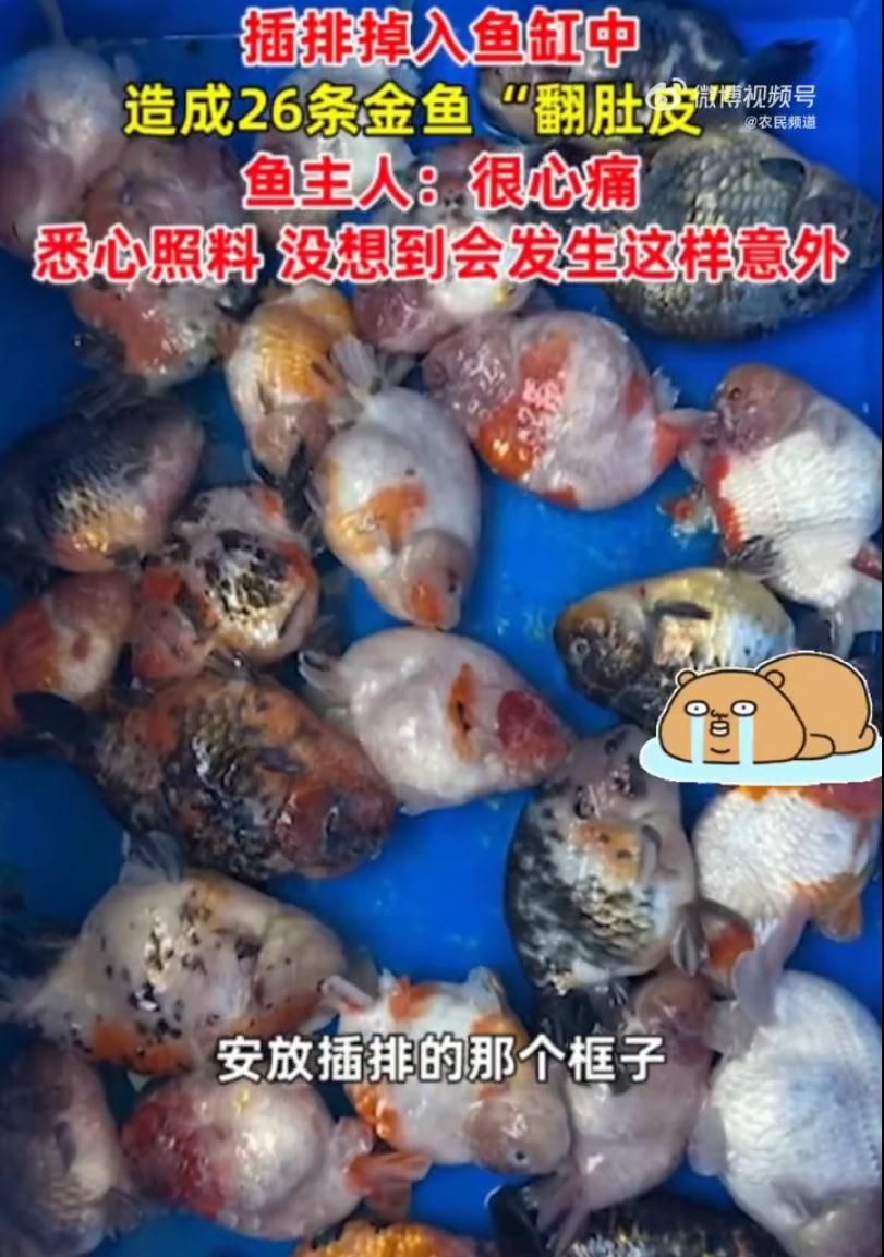 据河北电视台农民频道报道,10月23日,广东广州陈先生家中的连电插排因为没有固定好,不慎掉入鱼缸,导致陈先生26条心爱的兰寿金鱼全部一命呜呼。