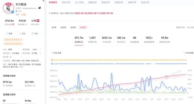 尽管6-9月连续四个月,东方甄选保持着抖音带货榜第一的位置,但是GMV已经有所停滞,据第三方数据检测,6-9月,东方甄选的月销售额在6-7亿元徘徊。