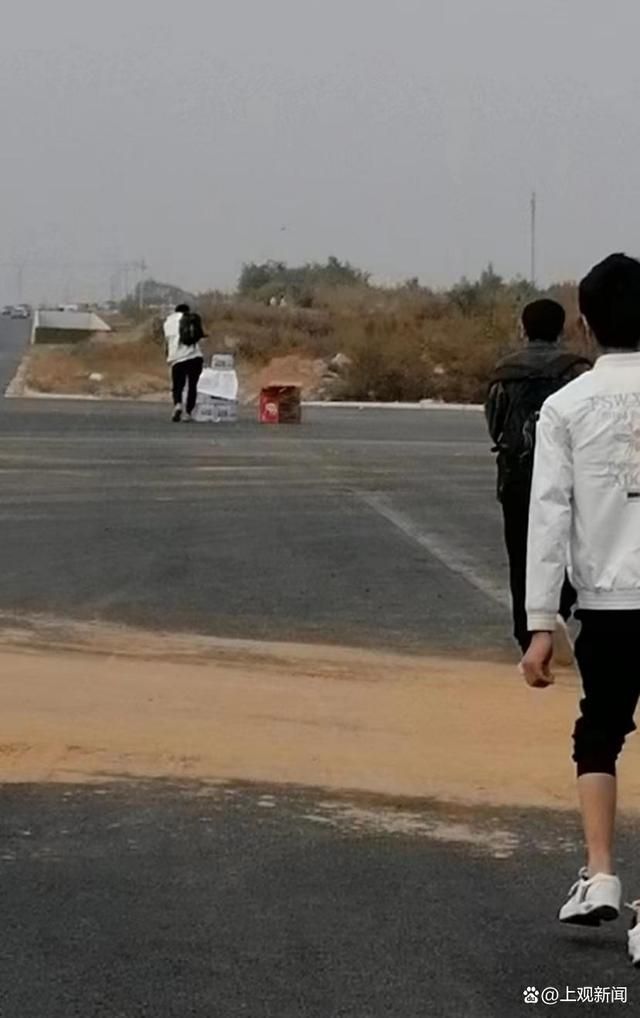体力一点点被消耗。最初,三人俩小时休息一会儿,后来变成一个小时停一下,到最后必须走半个小时休整一下。他们也遇到不少好心人。有大爷在路口接人,硬是塞给了他们几瓶水。还有退伍的老兵买了许多吃的和水,放在路边,免费派发给徒步返乡的老乡们。