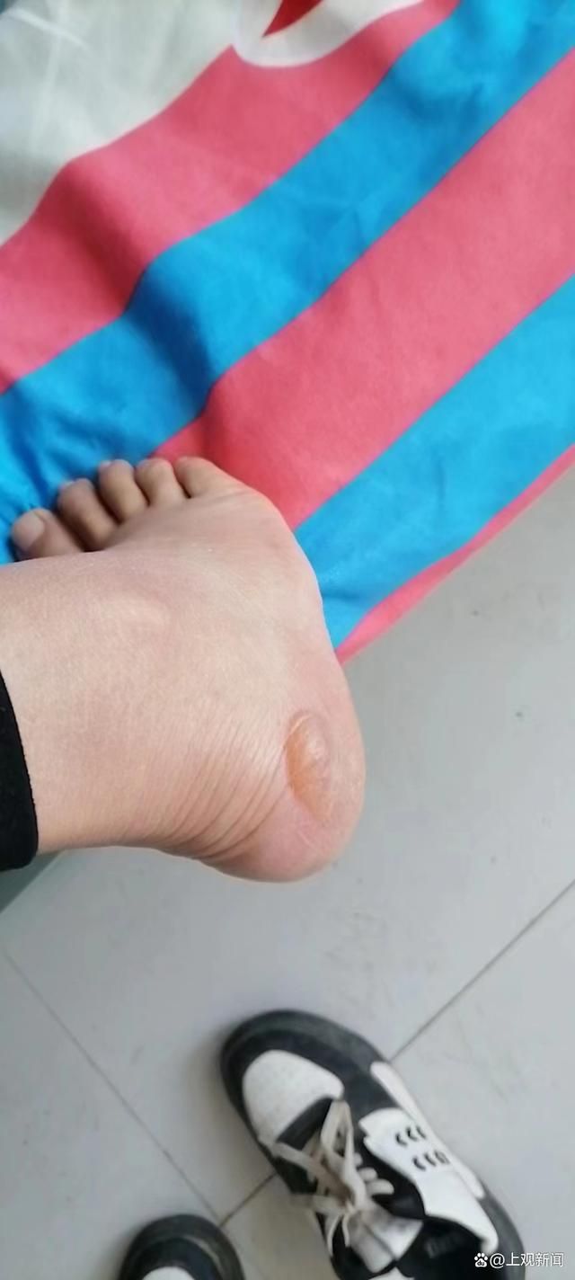 到达隔离点后,刘媛发现自己脚上已经起了水泡。 受访者供图