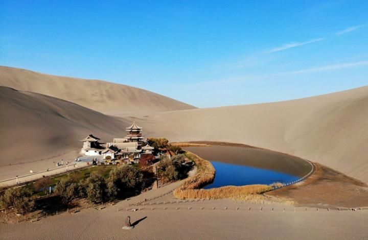 首页 月泉润鸣沙 满目美景色斑斓 2022-11-08 08:32:59 分享 人民网兰州11月7日电 (记者黄帆)正值秋冬交替时节,甘肃省敦煌市鸣沙山月牙泉景区内,泉水碧如翡翠,镶嵌在金色的沙丘上,一排排芦苇在泉水边随风摇曳,构成了一副色彩斑斓的靓丽风景。