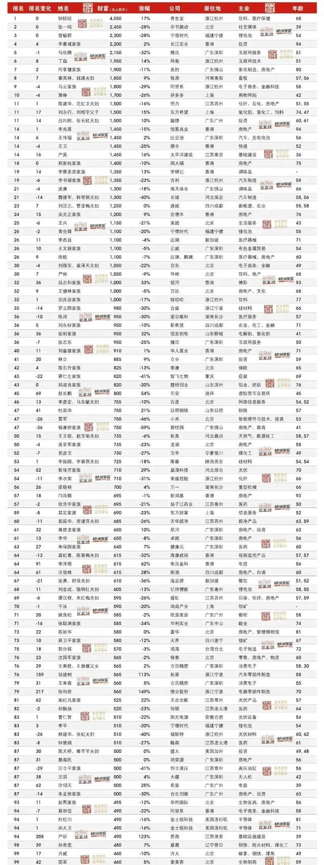 钟睒睒创造了二十多年来中国首富财富的最高纪录。字节跳动39岁的张一鸣财富比去年下降950亿元,以2450亿元位列第二。宁德时代54岁的曾毓群财富比去年下降900亿元,以2300亿元位列第三。