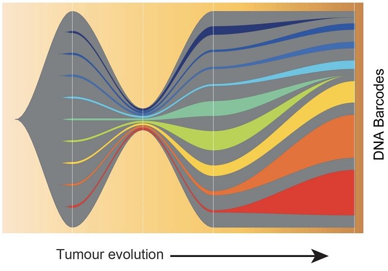 此次研究使用了DNA条形码技术,条形码是一种从一代细胞传递到下一代细胞的序列。研究人员使用了标记有已知DNA条形码的小鼠乳腺癌细胞,从而能看到更具侵略性和抵抗力的细胞来自哪里,DNA条形码使他们能追溯到原始细胞,看它是增大还是缩小。