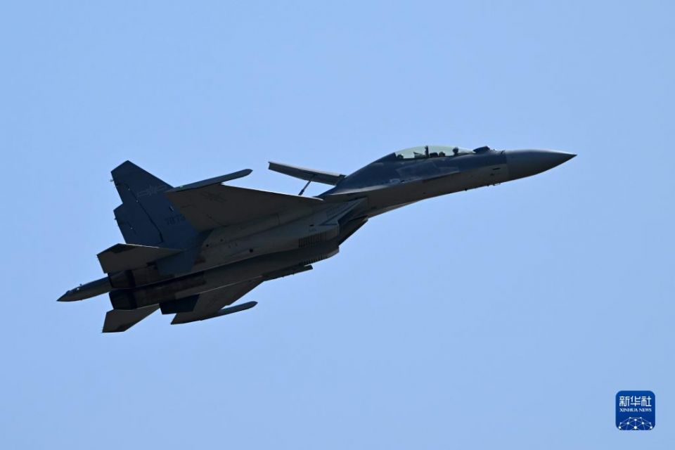 11月10日,空军歼-16战机在第十四届中国航展上进行飞行展示。新华社发(余红春 摄)