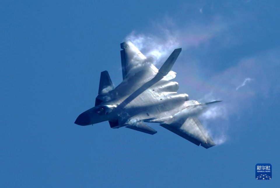 11月10日,空军歼-20战机在第十四届中国航展上进行飞行展示。新华社记者 张永进 摄