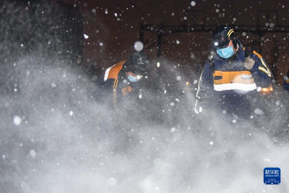 首页 冬夜除冰雪 列车保安全 2022-11-14 08:36:05 分享 11月13日,在长春火车站,中国铁路沈阳局集团有限公司长春站工作人员清理铁轨上的积雪。11月12日,吉林省长春市迎来降雪。13日凌晨,在长春火车站内,多个单位、工种相互配合,利用深夜列车停运的“天窗期”开展除冰除雪作业,确保列车行驶安全。新华社记者 张楠 摄
