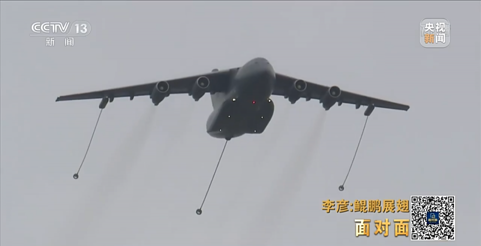 在飞行表演中,运油-20会释放出3根加油管,来重点展示它空中加油的功能。