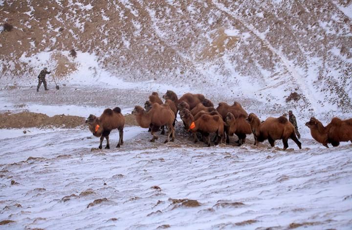 首页 甘肃阿克塞:冬日骆驼转场 2022-11-15 08:29:51 分享 2022年11月12日,甘肃阿克塞哈萨克族自治县红柳湾镇加尔乌宗村牧民,翻山越岭,将骆驼转场到了新的牧场,以确保畜群安全越冬。冬日时节,地处甘肃省酒泉市阿克塞哈萨克族自治县红柳湾镇加尔乌宗村的牧民们跟群放牧,将骆驼等畜群转场到了新的牧场,以确保牲畜安全越冬,合理利用草场。高宏善摄(人民图片网)