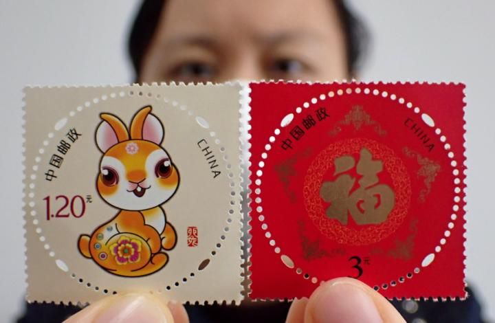 首页 中国邮政发行2023年贺年专用邮票 2022-11-16 09:29:34 分享 2022年11月15日,中国邮政发行《兔报新春》《五福具臻》2023年贺年专用邮票1套2枚,全套邮票面值4.20元。施柏荣摄(人民图片网)