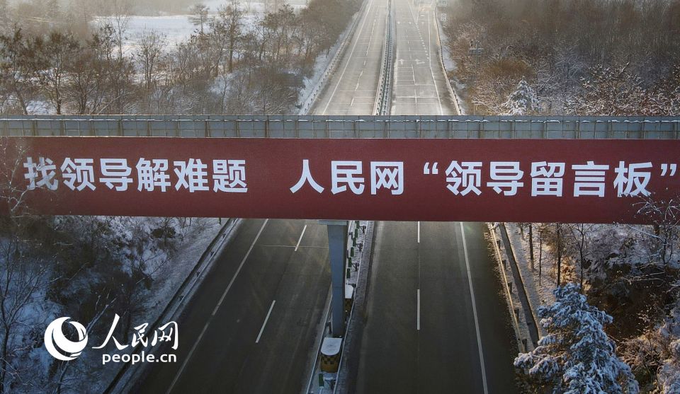 吉林省吉林市G12珲乌高速上横跨高速的人民网广告牌。人民网 李成伟摄