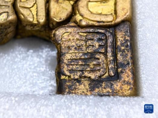 这是发掘出水的“荣世子宝”金印局部(2022年4月25日摄)。 新华社记者 王曦 摄