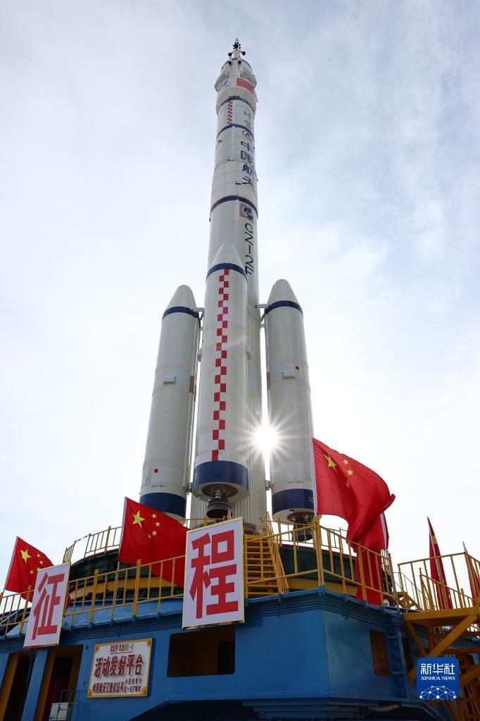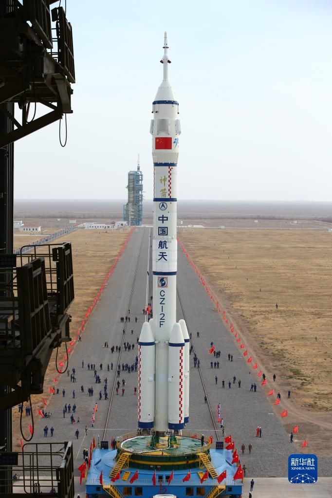 11月21日,神舟十五号载人飞船与长征二号F遥十五运载火箭组合体转运至发射区。新华社发(李昀锡 摄)