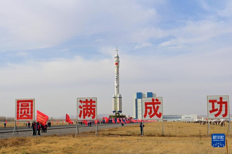11月21日,神舟十五号载人飞船与长征二号F遥十五运载火箭组合体转运至发射区。新华社发(汪江波 摄)