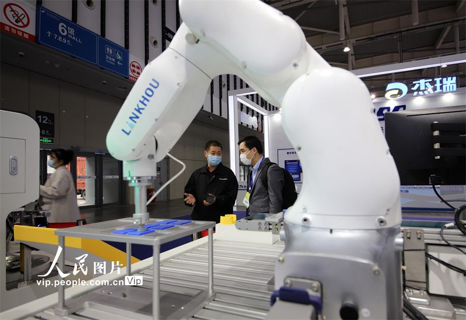 科创 2022中国(南京)国际软件产品和信息服务交易博览会开幕 2022-11-24 12:33:26 分享 观众在南京国际博览中心参观一款机器人教学平台。11月23日,为期3天的2022中国(南京)国际软件产品和信息服务交易博览会在南京国际博览中心开幕。本次博览会以“软件赋能 数智转型”为主题,设“线下展”和“云上展”,重点聚焦信息技术应用创新、信息安全、未来产业、产业数字化等关键领域。李文宝摄(人民图片网)