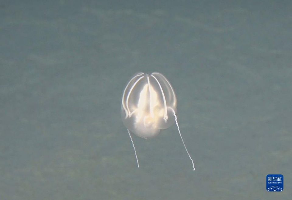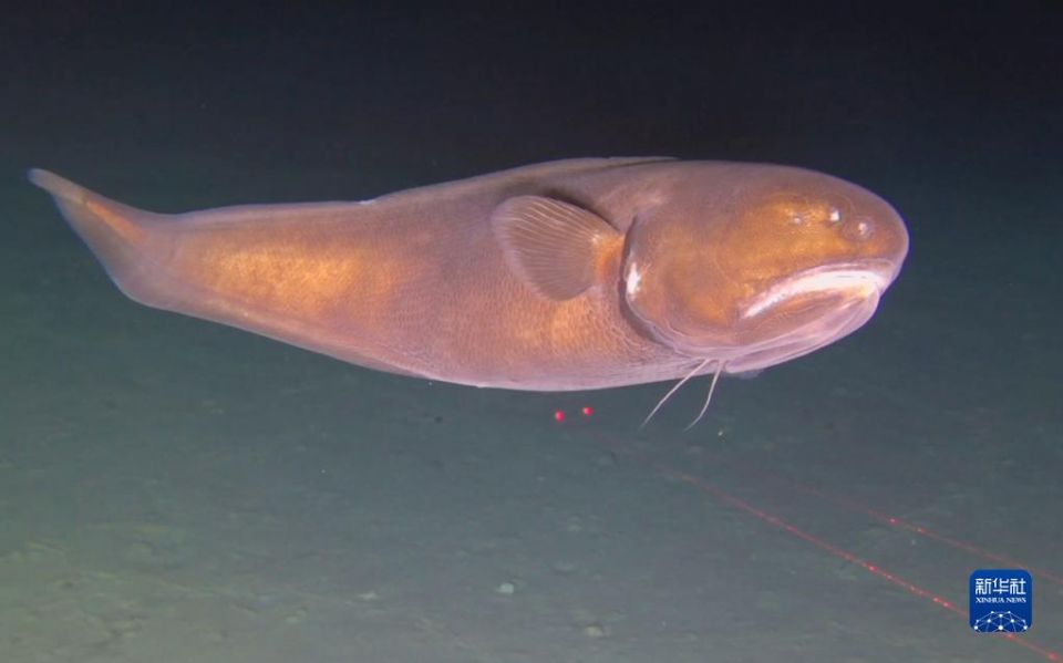这是11月14日“奋斗者”号在深海拍摄的海洋生物。新华社发