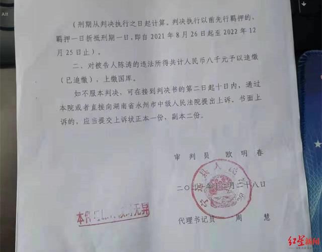 陈 某生已将相关问题向永州市纪委监委进行反映,宁远县纪委监委已回电进行问询。宁远县人民法院办公室称,目前他们尚未接到相关举报。11月25日,永州市纪 委监委举报电话工作人员回复红星新闻,录音内容反映的问题,属纪委监委受理范围,对本举报线索严查。日前,红星新闻记者已将相关录音,邮寄给永州市纪委监 委。