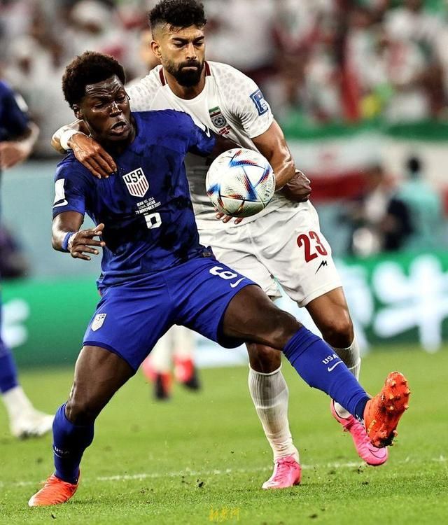 在 助威声的浪潮中,年轻的美国队展现出更强的冲击力,他们奔跑积极,传导球速度快,活动范围大,伊朗队只能疲于奔命。场上的天平由美国队打破,第38分钟, 麦肯尼发动长传,德斯特传中,普利西奇门前包抄得手。上半场比赛美国队的射门次数高达9次,伊朗的射门次数则是尴尬的0。