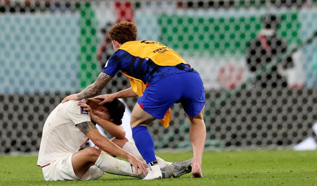 面对被淘汰的结局,伊朗队员无法接受,他们瘫坐在草皮上,塔雷米和埃扎托拉西留下遗憾的泪水,美国队员很友好地送上安慰,为这场焦点对决画上了一个温情的句号,也让足球赢得尊重。
