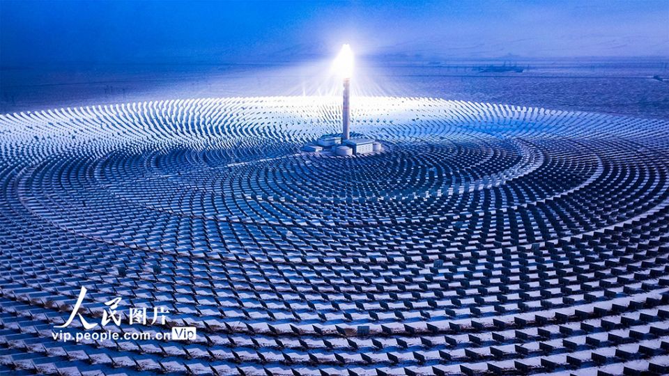 科创 甘肃敦煌:光伏电站雪景 2022-12-05 08:52:50 分享 甘肃敦煌:光伏电站雪景2022年12月3日,雪后初霁,甘肃省敦煌市光电产业园区内,万余面定日镜以同心圆状围绕着吸热塔,蔚为壮观。敦煌光电产业园区作为甘肃省集中连片面积最大、装机容量最多的园区,立足国家新能源战略布局的重要支点和西北清洁能源向中东部地区输送的重要通道,利用大面积的戈壁、荒漠大力发展新能源产业,不断推动经济社会绿色化、低碳化高质量发展。王斌银摄(人民图片网)