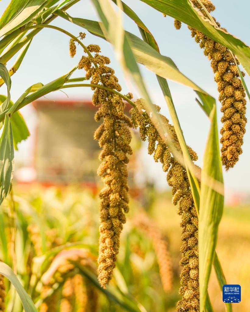在山东省邹平市西董街道一种植基地拍摄的谷子(9月2日摄)。新华社发(董乃德 摄)