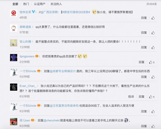 对此网友们纷纷发表了自己的看法,有部分网友表示挺好的,有网友称,”我喜欢,方便我了“,还有网友表示,”各有所长,合用的话,太好了,“不过,更多的网友并不买账,觉得这个新功能没必要,有网友评论,“多此一举,是我们的手机不会推送qq消息吗?搞笑”,也有网友称,“试了一下,确实不好,回复消息还是得去QQ”还有网友表示,”不能直接回复弄个这个不是鸡肋么“,还有网友在评论区提起了需求,”我们更想要改id“。