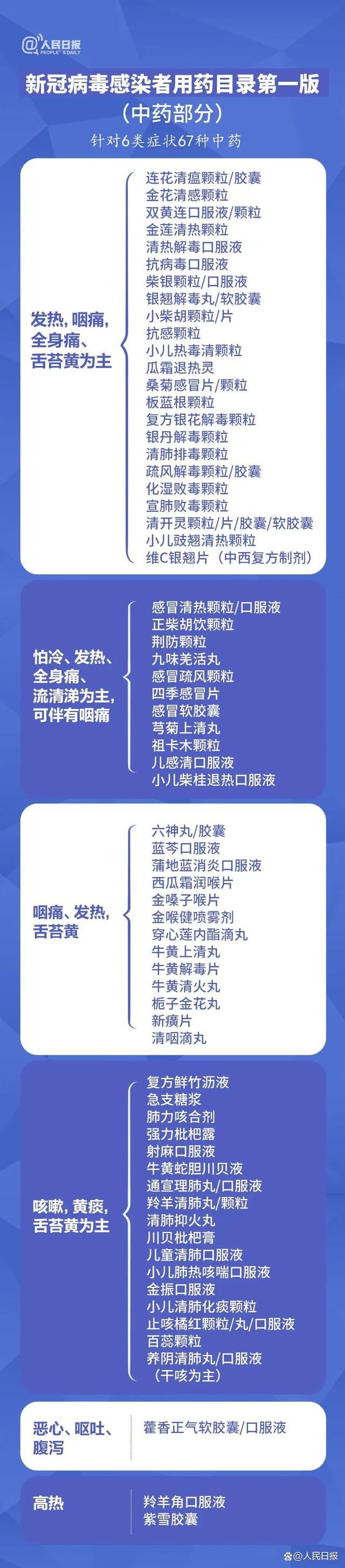 最近,不少人购买的药物主要集中在“连花清瘟”“布洛芬”等国家第九版诊疗方案中推荐的有限品种上。为此,多位药学、临床、中医专家,结合北京市的气候特点,参考本轮疫情用药实际,论证了《新冠病毒感染者用药目录(第一版)》,现推荐给社会公众。此版用药目录按照中西药分开的原则,是对国家第九版诊疗方案中推荐用药的完善和补充,针对发热、咽痛等6类中医诊断症状推荐67个中药品种;针对咳嗽、咳痰等4类临床症状推荐41个西药品种。