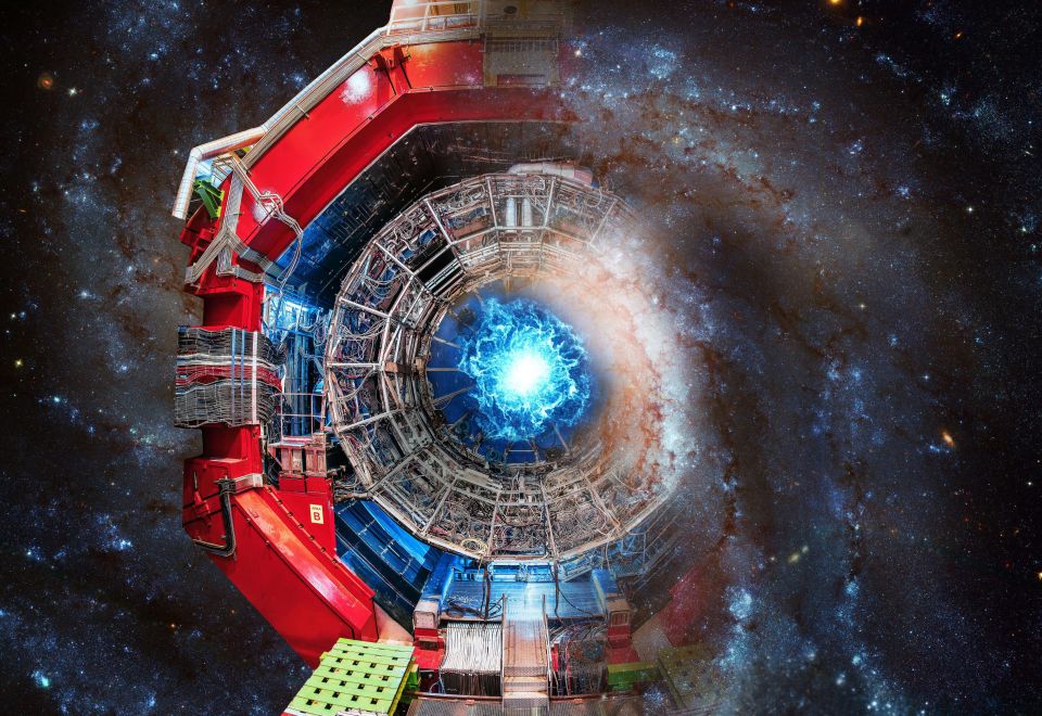 欧洲核子研究中心ALICE探测器及宇宙中的反氦湮灭的艺术概念图。图片来源:《自然·物理》