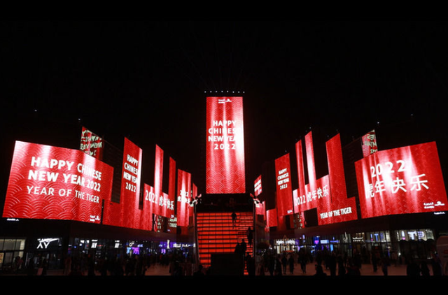 △今年2月,沙特首都利雅得首次点亮“中国红”以庆祝中国春节。