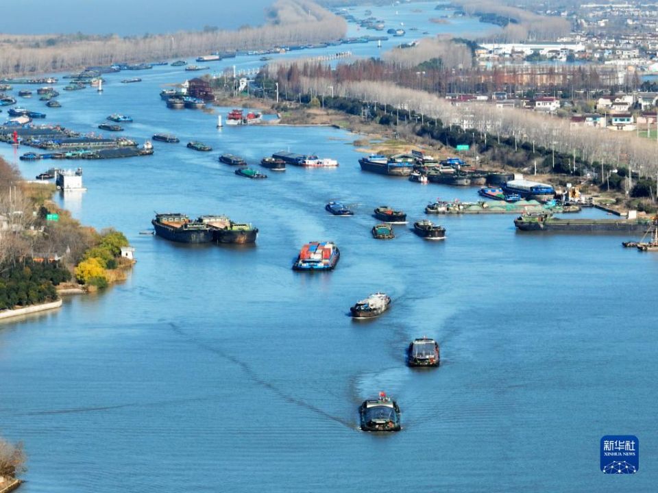 首页 江苏扬州:京杭大运河冬季运输忙 2022-12-20 08:32:26 分享 12月18日,货船行驶在京杭大运河江苏扬州段(无人机照片)。入冬以来,在京杭大运河江苏扬州段,装载煤炭、钢材、建材等货物的船舶在航道上有序航行,来往如梭,运河上呈现一派繁忙景象。新华社发(孟德龙摄)