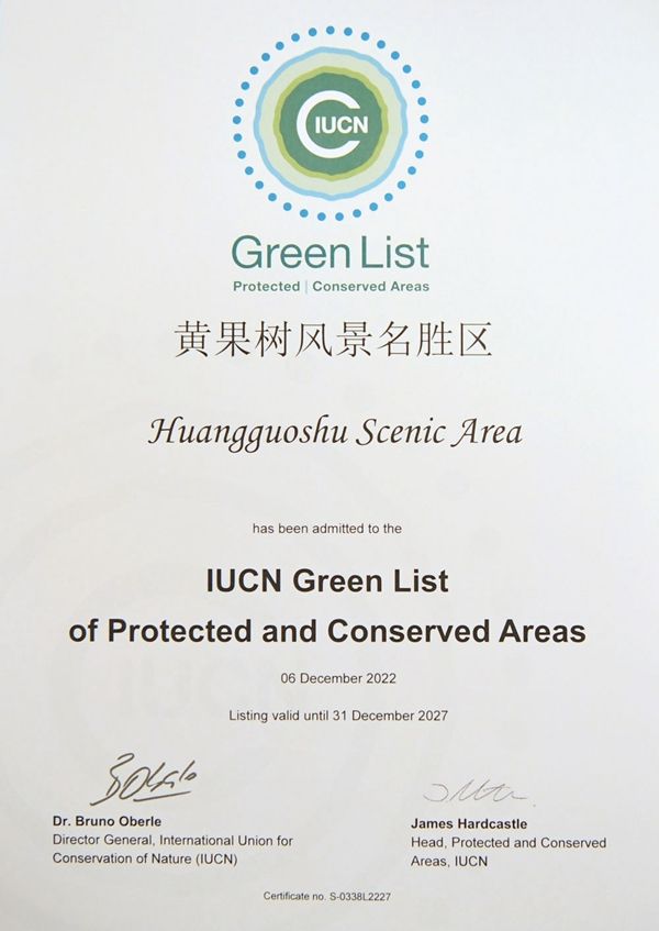 这是在加拿大蒙特利尔拍摄的黄果树风景名胜区获得的世界自然保护联盟绿色名录证书(2022年12月14日摄)。新华社记者 任鹏飞 摄