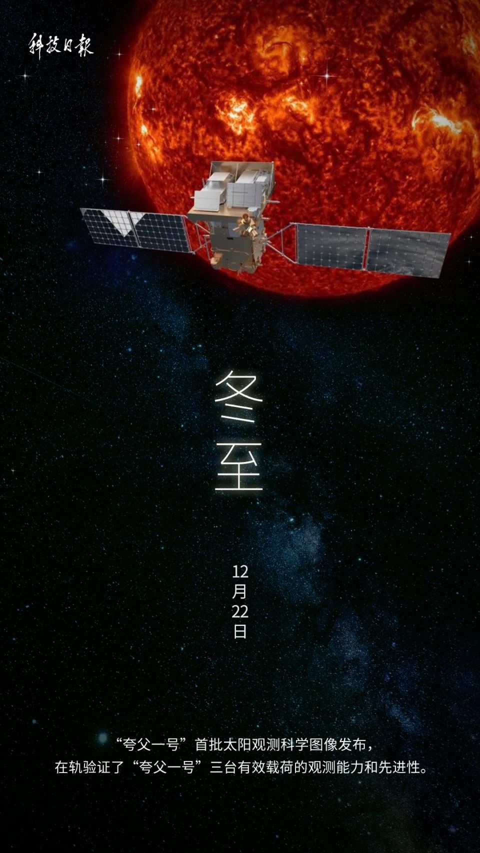 北京时间12月22日5时48分迎来冬至节气,民间习俗从这一天开始“数九”,标志寒冬到来。冬至是太阳南行的极致,这天北半球的太阳高度最小。冬至标示着太阳新生、太阳往返运动进入新的循环,目前正在太空“逐日”的“夸父一号”也传来新成果。